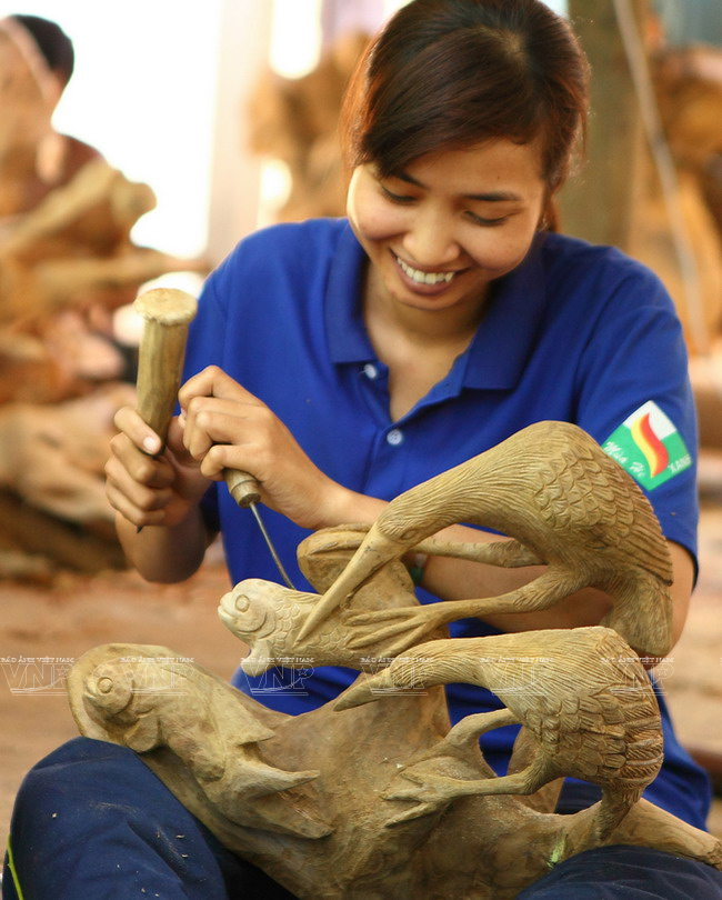 So far, over 60 Khmer young people have been taught the craft. Thi So My, born in 1990, who studied the craft for two months, said: “Although I am a girl, I like learning this craft very much, because seeing the work I create with my own hands makes me hope to become a wood sculpture artisan.”