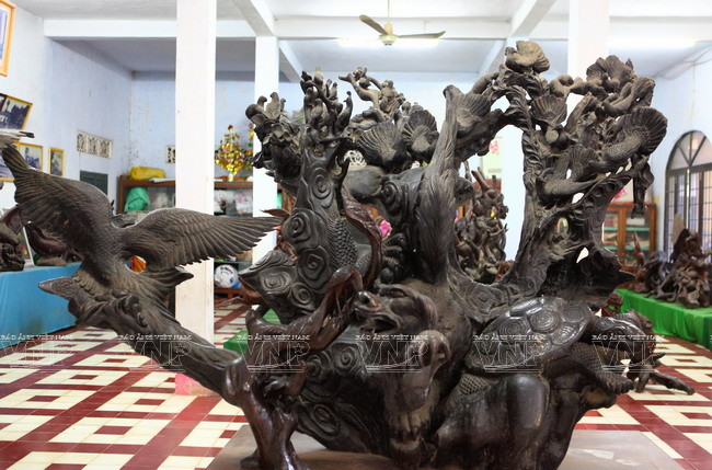 In particular, there was an item worth hundreds of millions of dong ordered by a Cambodian customer. One of the most famous, unique and spectacular works of the club which attracts a great number of people to see when they visit Tra Vinh is “Nine dragons struggle for the gem”, size 3.5m x 3.5m. It is made from the roots of nine ancient trees.