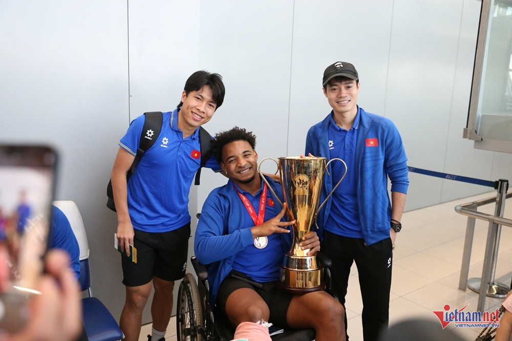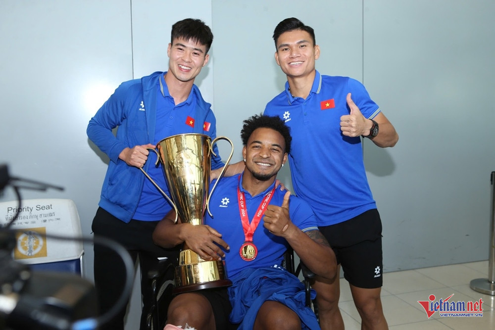 In a touching gesture, captain Duy Manh and the rest of the team presented the championship trophy to Xuan Son at Suvarnabhumi Airport. Overcome with emotion, the 27-year-old striker shed tears as he felt the love and solidarity of his teammates and fans.