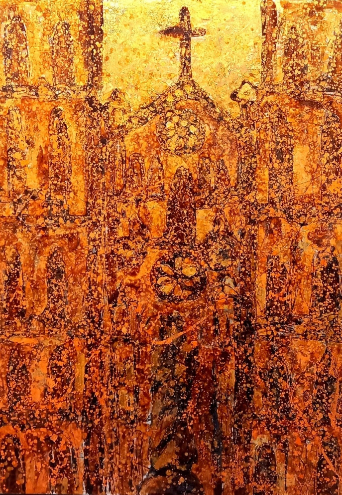 Artist Le Ba Cau draws inspiration from churches, being awestruck by their grandeur and beauty. His works reflect the intricate and sometimes tumultuous architecture, akin to the mind and spirit of individuals.