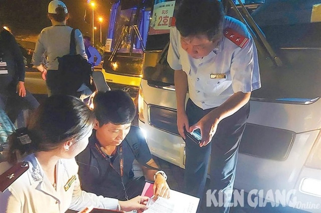| Inspectors from the Kiên Giang Provincial Department of Tourism checking tour operator licences. — Photo baokiengiang.vn |