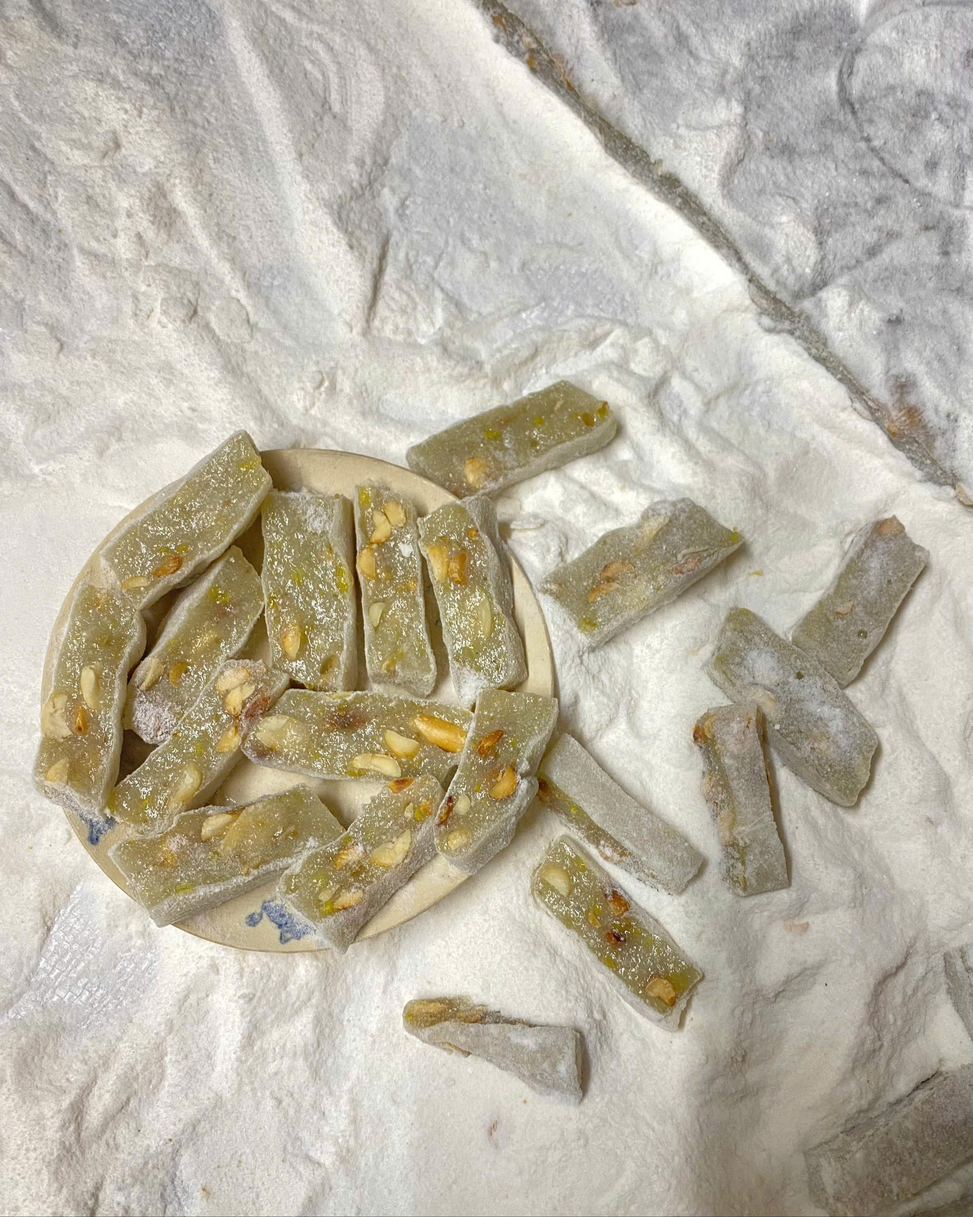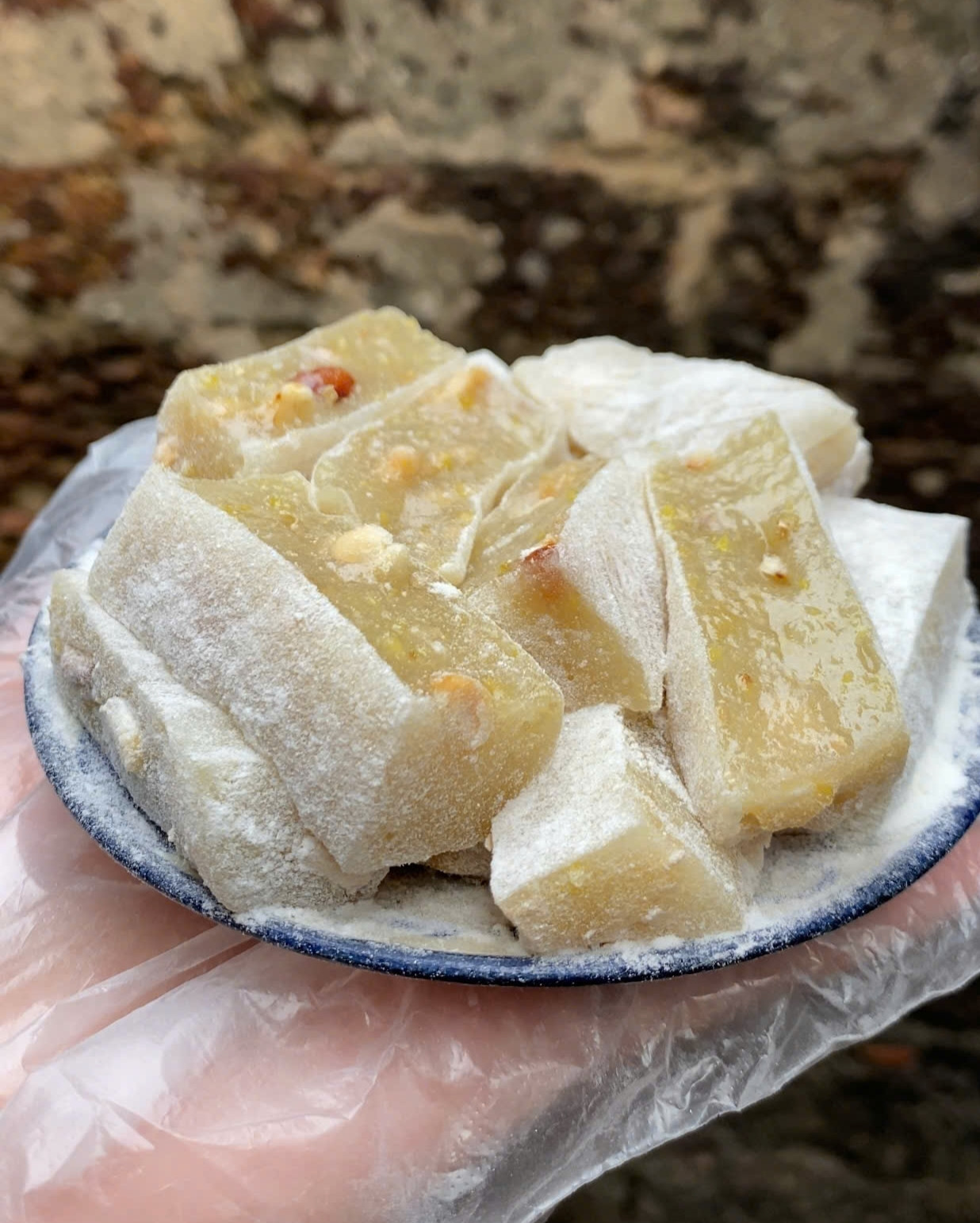 Ngoc Anh explained that che lam is made from glutinous rice flour, roasted peanuts, fresh ginger, molasses, and malt syrup.