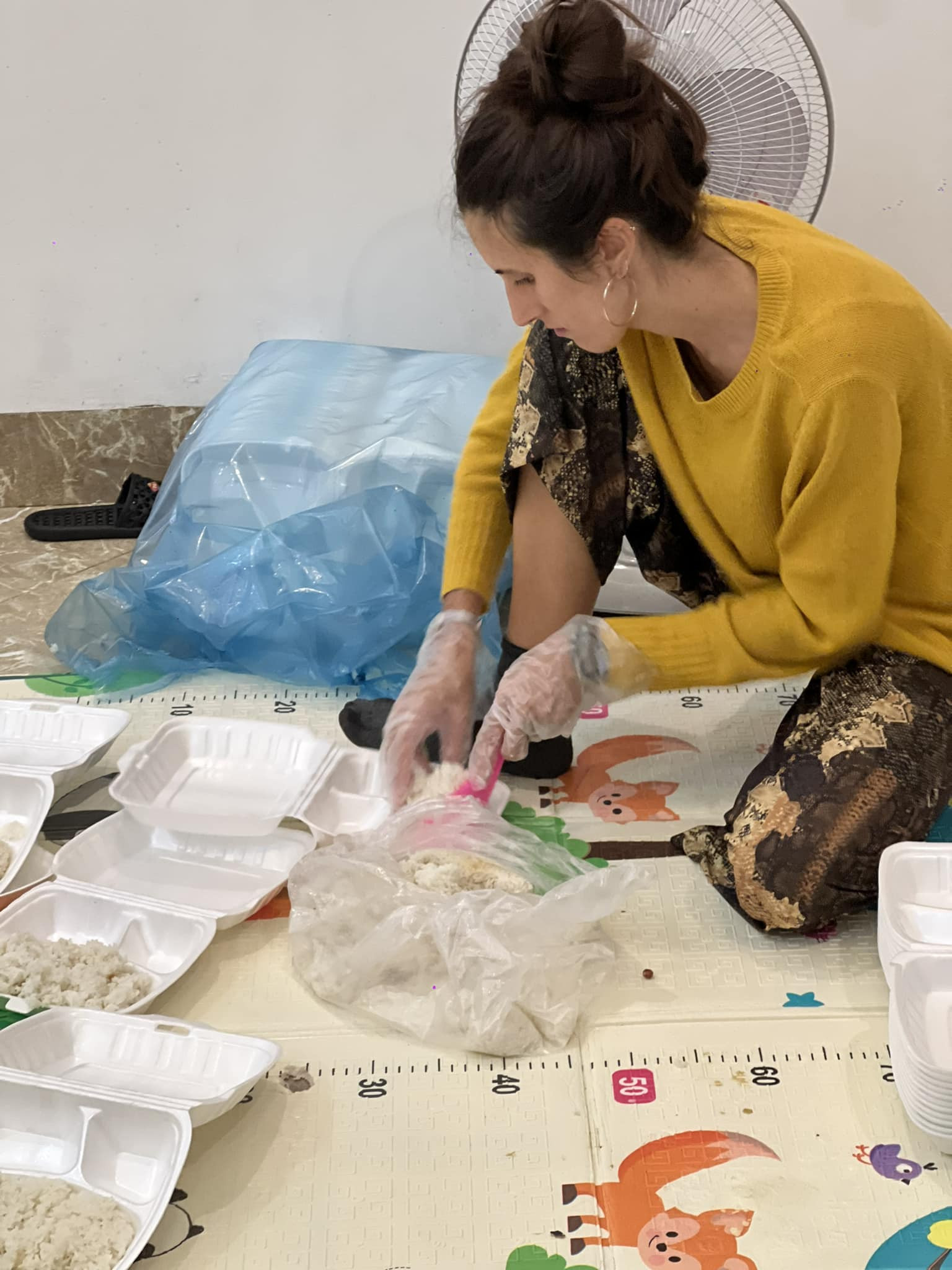 Moved by the hospitality they received, Violeta and Candela helped prepare 400 meals for landslide-affected communities in Bao Yen and Bac Ha. Although they had little experience cooking, their desire to help drove them to quickly learn and assist.