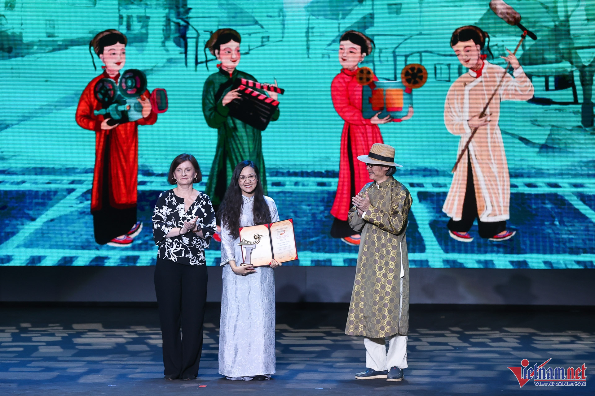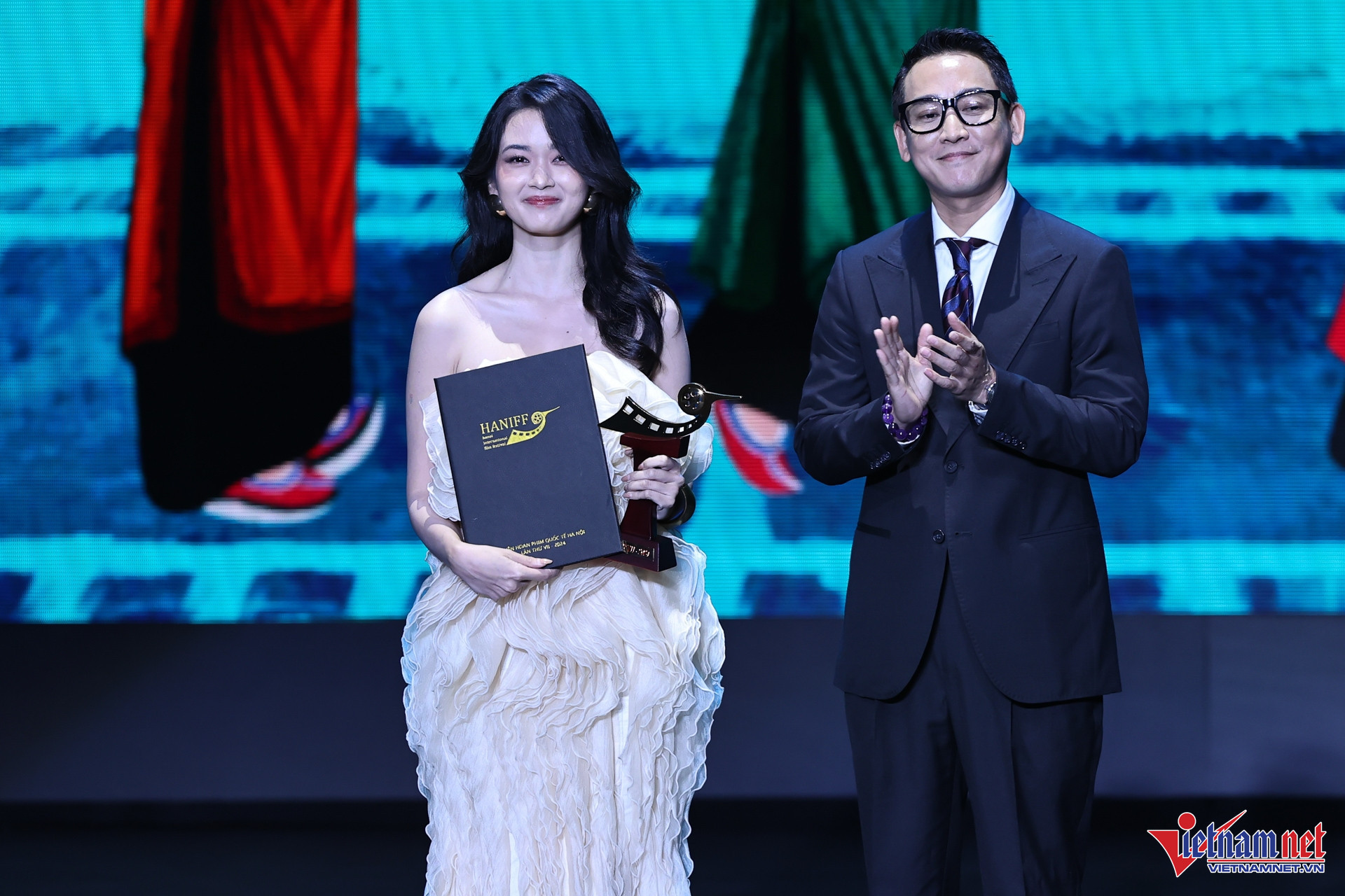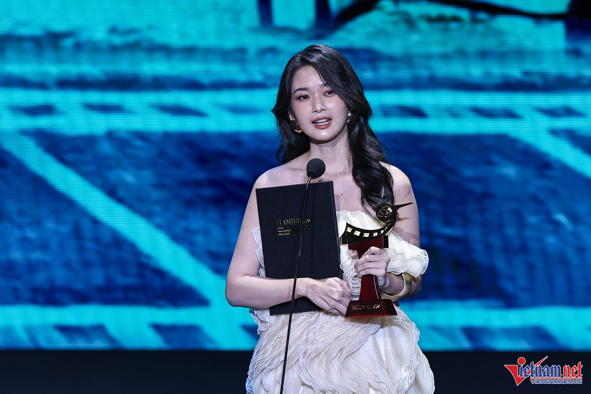 On the evening of November 11, the closing and awards ceremony of the 2024 HANIFF took place at Ho Guom Theater. Following an explosive performance of ‘Trong Com’ by Cuong Seven and Soobin Hoang Son, the “Promising Young Actor” award was presented by judge Hua Vi Van to actress Ngoc Xuan for her portrayal of Mien in ‘Once Upon a Time in a Story’. Ngoc Xuan expressed her gratitude to the director for casting her, and to her crew and co-stars for their support.