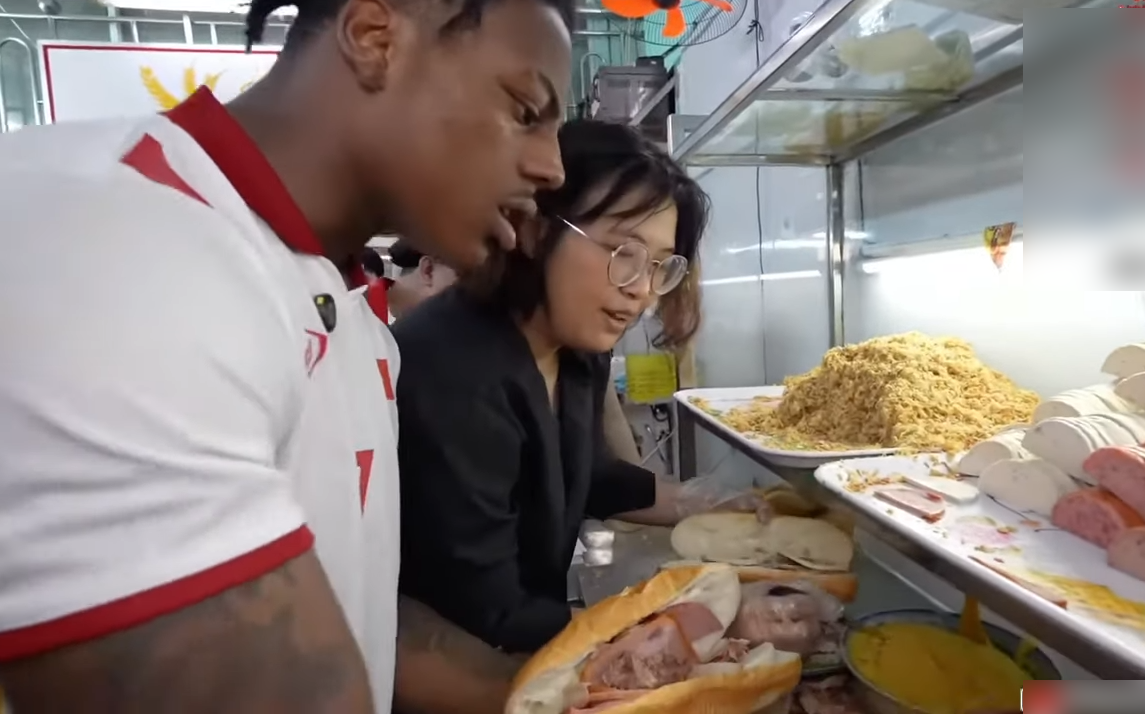 One of the highlights of his trip was visiting a famous banh mi shop in District 1, where IShowSpeed learned to make and taste one of the city's priciest sandwiches, priced at 68,000 VND (approximately $2.80).