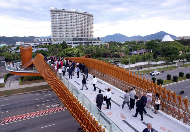 Odaka Yoshimune, Chairman of the Mikazuki Group, said the overpass connects Đà Nẵng Mikazuki entertainment complex and a beach across Nguyễn Tất Thành Street. The bridge will allow local people and visitors to safely reach the beach and enjoy the beautiful landscape of the locality.