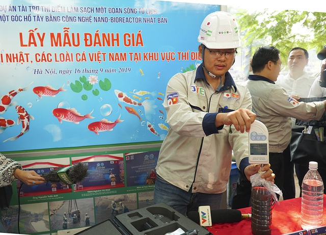 This morning, environmental experts from Japan and Vietnam released the fish at the two sections of To Lich River and West Lake which have been treated for pollution with Nano-Bioreactor technology.