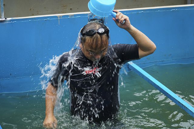 Dr. Kubo Jun swam in the tank