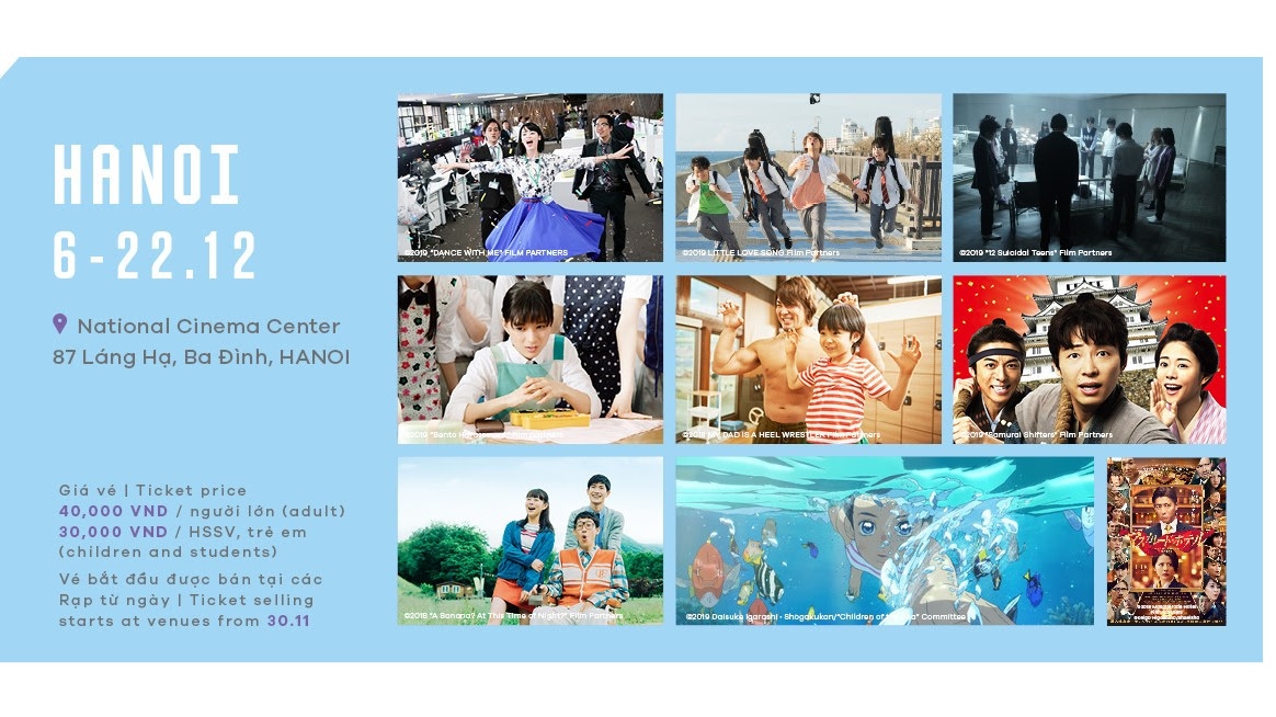 The 2019 Japanese Film Festival will be held in Hanoi from December 6-22, promising to entertain the audiences of the capital city.