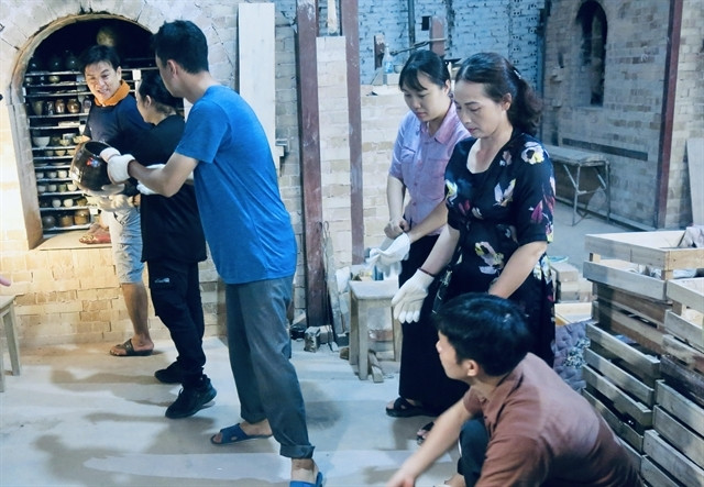 He is busy unloading a batch of freshly-fired pottery from the kiln alongside his students at Phù Lãng pottery village in Quế Võ District, Bắc Ninh Province, on a sweltering July afternoon.