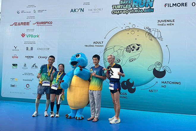 Japanese athlete Kento claimed victory in the 21km half-marathon at the “Save Turtles Run 2025,” held at the Con Dao Special Administrative Region.