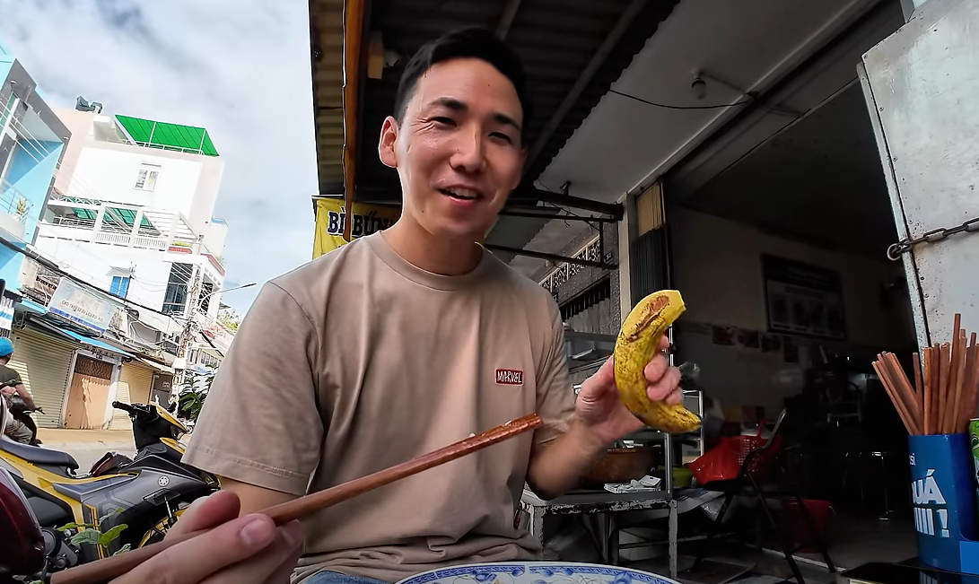 During a recent trip to the Mekong Delta, he visited Ben Tre and introduced his viewers to several local delicacies. Among them was bì bún (vermicelli noodles served with shredded pork skin and accompaniments), a dish he had never encountered before.