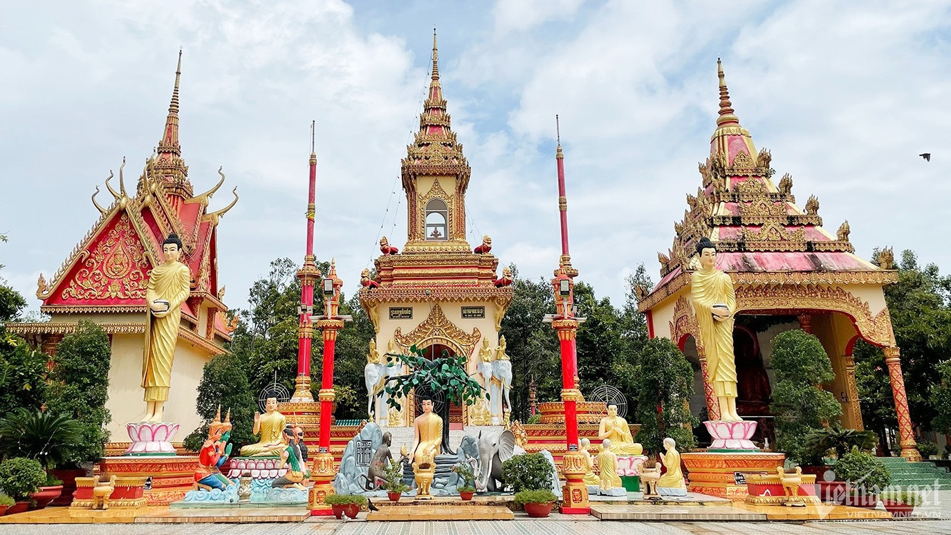 The temple’s architecture includes the tam quan entrance gate, surrounding walls, main hall, sala (assembly hall), and bell tower. All structures face east and follow Theravāda Buddhist traditions infused with distinct Angkorian-Cambodian stylistic elements.
