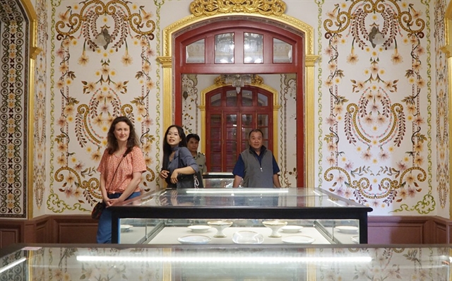 | Amandine Dabat (left) surveys the exhibition venue at Kiến Trung Palace during a visit to Việt Nam in November 2024. Photo baovanhoa.vn |