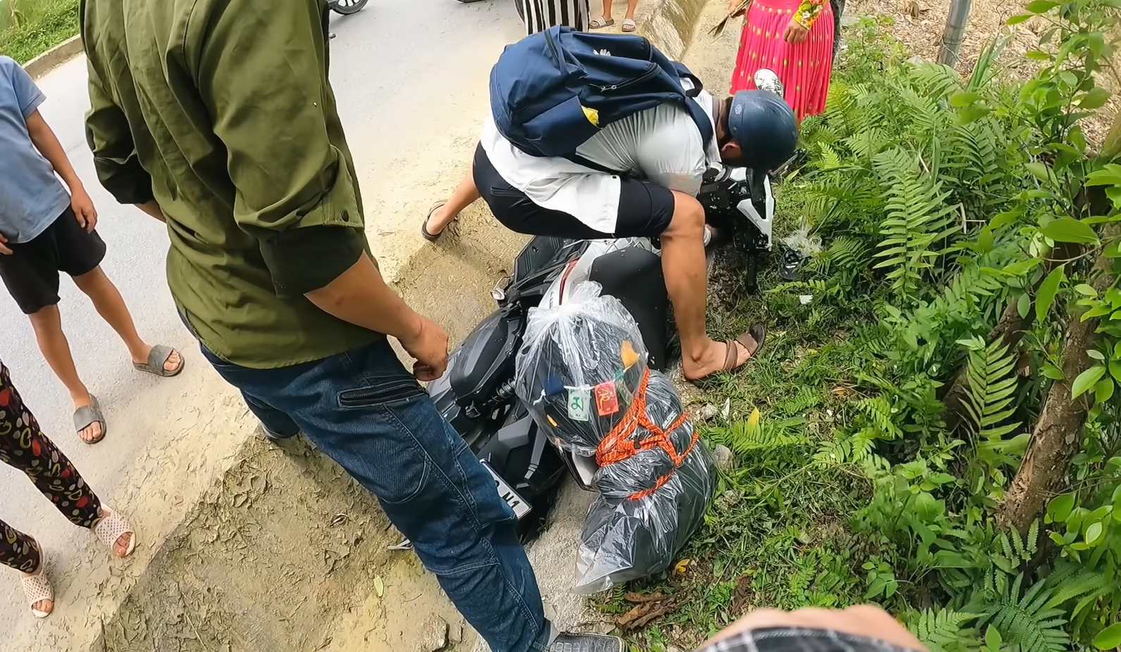 Luckily, nearby locals rushed to help. Two men lifted her motorbike back onto the road, while a woman invited Heesu into her home, offering clean clothes, a shower, and comfort. They carefully checked to ensure she was not seriously injured.