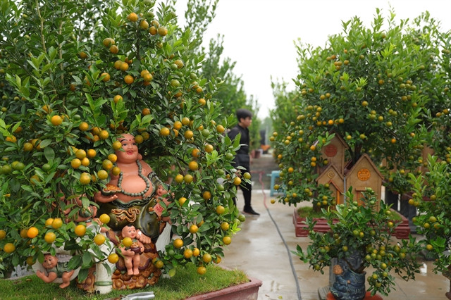 As Tết (Lunar New Year) festival nears, Tứ Liên Village – the “capital of kumquat trees” in Hà Nội’s Tây Hồ District, is bustling as growers offer their ornamental kumquat trees to the market.