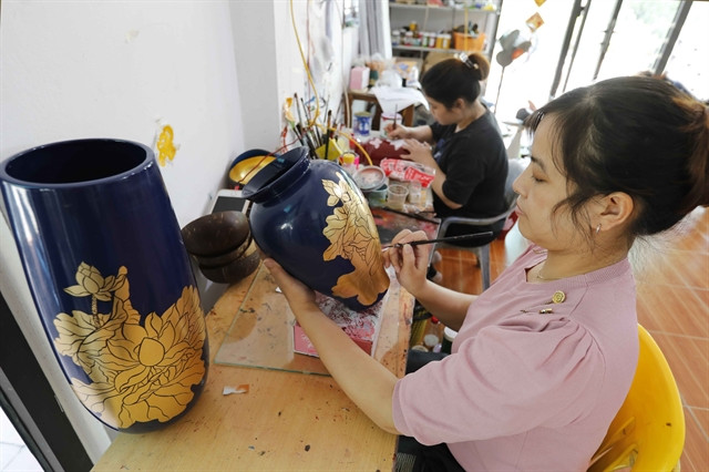 | A craftsman draws on a lacquer item at a workshop in Hạ Thái Village. — VNA/VNS Photo Trần Việt |