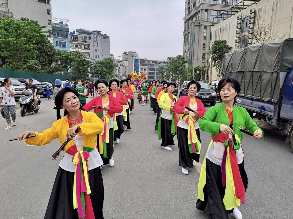 | Middle-aged women dance in the procession. Photo: Minh An/The Hanoi Times |