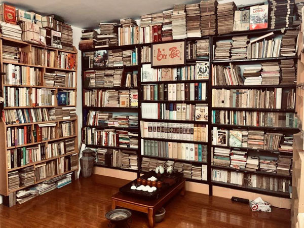 Old books with worn spines, and newspaper pages that have turned yellow over time these are what book lovers often see when they come to lawyer Ta Thu Phong's library in Ngoc Thuy Street, Long Bien District, Hanoi.