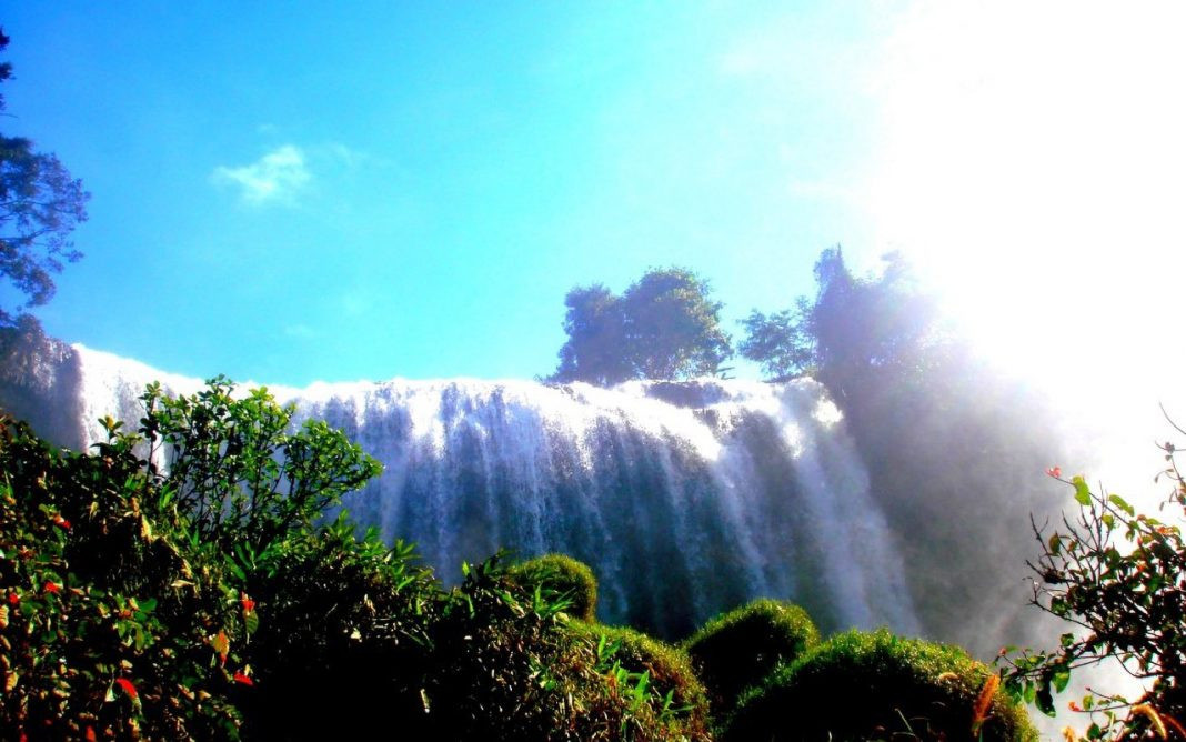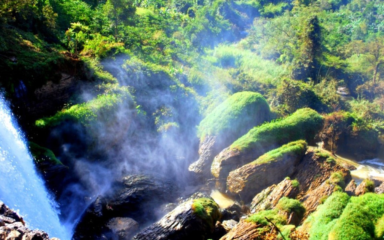 The waterfall is 20 meters wide and 30 meters high. When the sun shines on the flowing water, a gorgeous rainbow appears, amazing travelers.