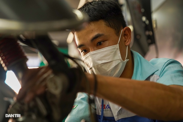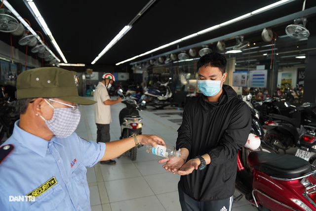 People wearing masks at a petrol station on Truong Chinh Street, Tan Binh District.