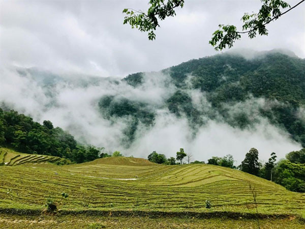 Waking up in the morning in a traditional wooden house roofed with the clay tiles of the Dao Tien and looking out the window, visitors can see spectacular fluffy clouds hanging above ancient cinnamon trees in the garden. In this isolated village, every activity seems to happen in the clouds.