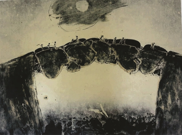 Crescent Moon Serenada, Monoprint, display at 78 Le Duan street, in Da Nang. Photo courtesy of theFine Arts Museum |