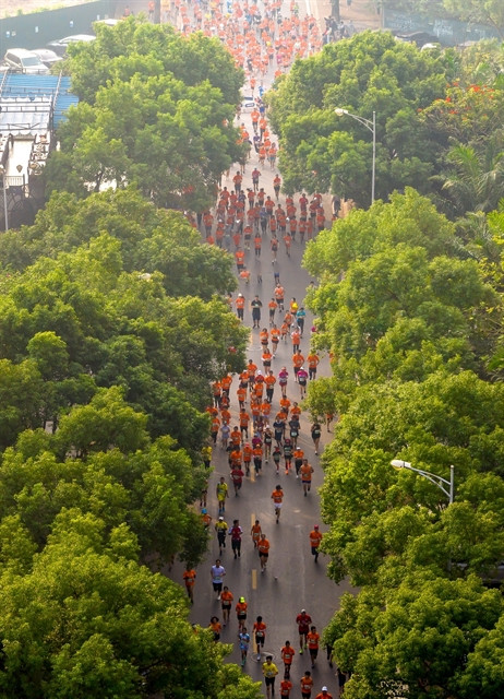 As usual, runners will either run for podium or enjoy their leisure time in four different categories of 42km, 21km, 10km and 5km, with the track routes designed to lead them around Long Biên District located on the other side of the Red River.