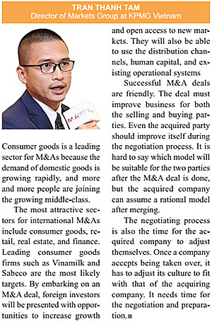 “Increasingly deep global integration, through the signing of free trade agreements and the establishment of the ASEAN Economic Community, has contributed to making Vietnam more attractive to international groups and M&A is an effective investment channel,” said Tran Thanh Tam, director of KPMG’s Markets Group.