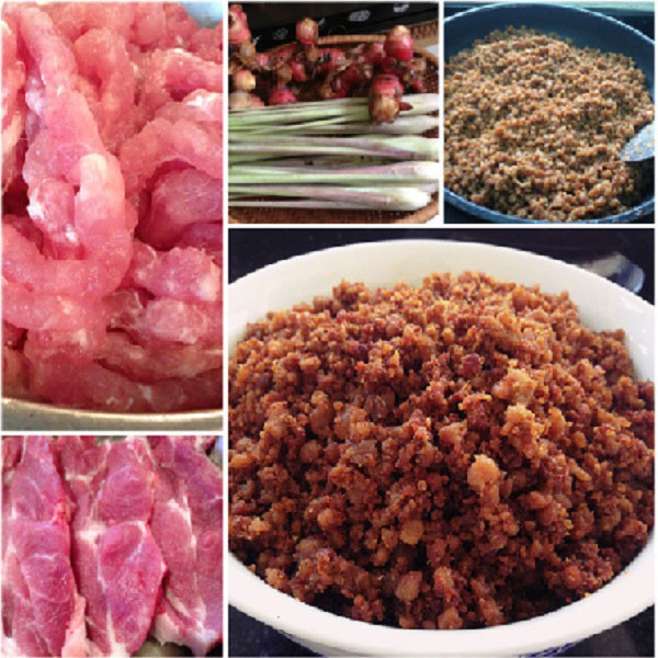 To make mắm tép chưng thịt, shoulder pork is the most suitable because it is not too lean or too fat. The pork should be ground carefully.