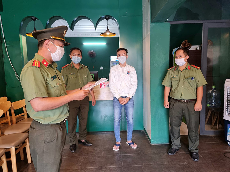 Officers read the arrest warrant for Nguyen Tran Anh Tuan. Photo: Danang police |