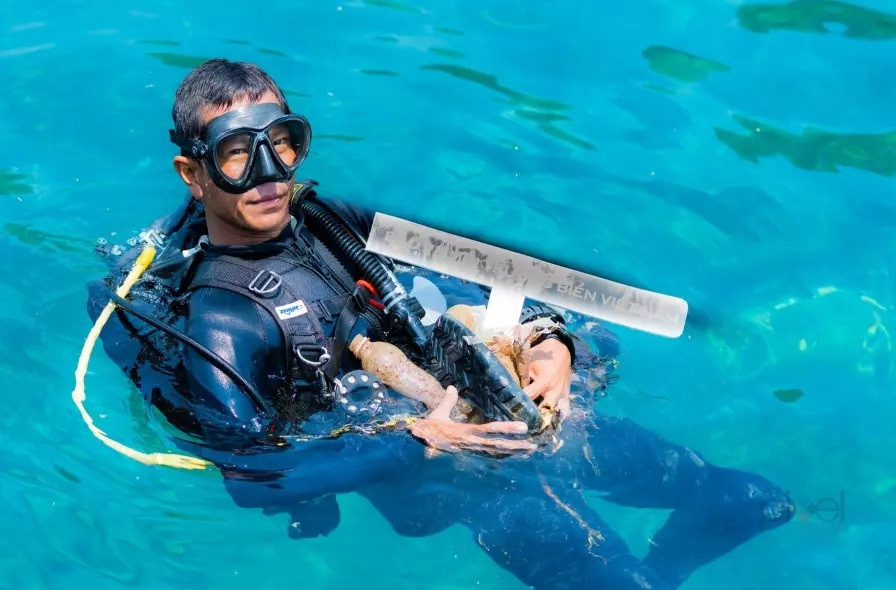 During Mr. Duc courses, he tried to educate his learners about the importance of preserving the marine environment. Gradually, they supported his actions and took part in collecting waste on the ocean floor.