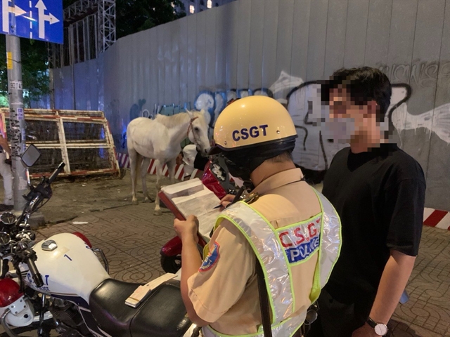 He was stopped by traffic police at 6.20pm Tuesday while riding at the Hai Bà Trưng-Nguyễn Đình Chiều intersection. He and his horse blocked other vehicles and posed traffic danger to others, the report said.