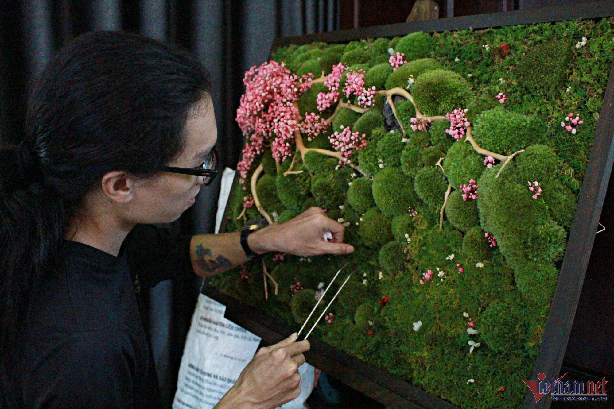 It takes Nhat Hoang one or two weeks to complete a painting. His moss paintings are priced from hundreds of thousands of dong to tens of millions of dong. His original paintings are favored by clients.