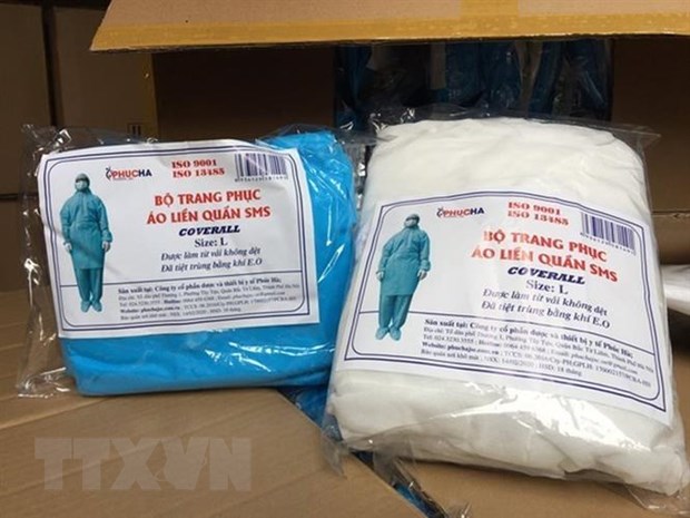 COVID-19 preventive suits passed off as from Phúc HàMedical Equipment and Pharmaceutical Joint Stock Company.