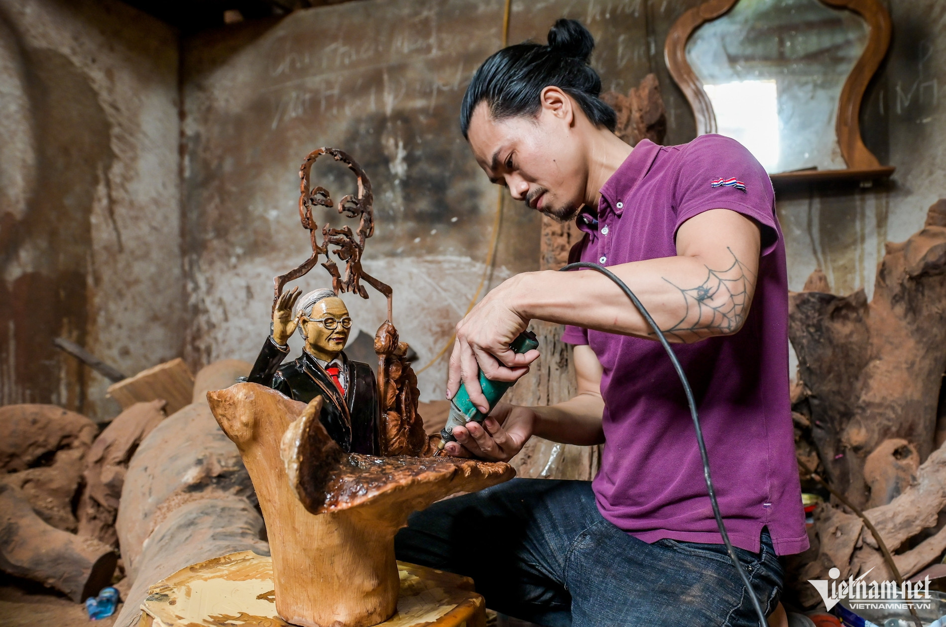 Upon hearing the news of the General Secretary's passing, Lu Thanh Luan, residing in Y Yen District, Nam Dinh, began working tirelessly on a lifelike statue of the late leader. Despite the usual requirement of several weeks, or even months, to complete such a detailed sculpture, Luan finished his work in just four days and nights. Driven by his profound admiration for Nguyen Phu Trong, Luan worked from memory without the need for reference sketches.