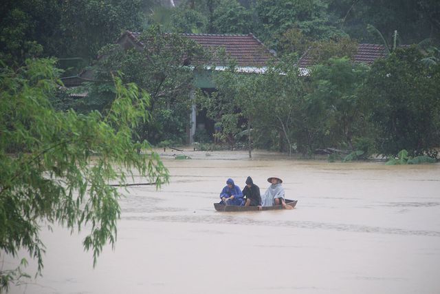 Ha Tinh and Phuong My in Huong Khe District have been hardest-hit as almost local houses and crops are flooded. Some areas are even five metres under water.