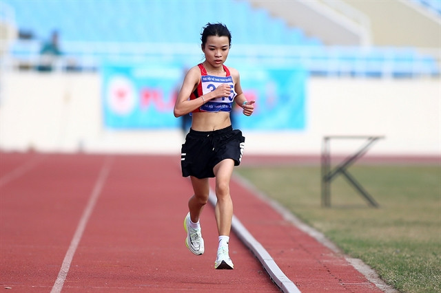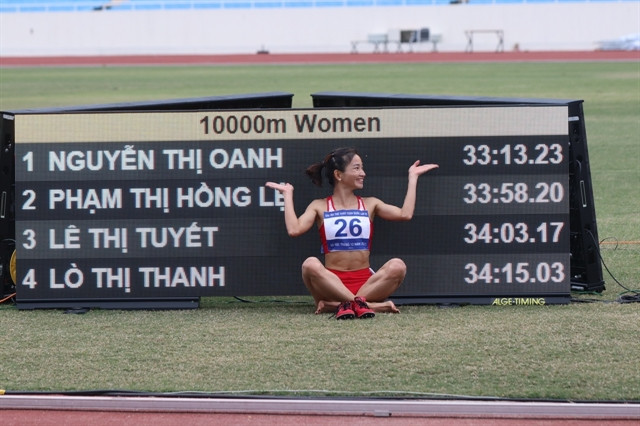 | Runner Nguyễn Thị Oanh celebrates her result in the women’s 10,000m event at National Sports Games. — Photo thanhnien.vn |