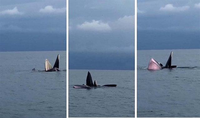 In a 35-second clip by fisherman Vương Ngọc Thủy recorded on September 22, whales surfaced and played with each other while eating.