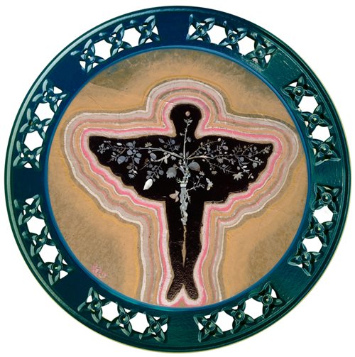 The ten circular paintings displayed in “Fairy” represent Hiep’s first experiments with rice paper (Do paper), asian lacquer, pearl shell and acrylic on wood. The artist is enamoured with pieces of glittering pearl shell pieces, profound drops of Asian lacquer, ancient flowers and floating clouds on rice paper.