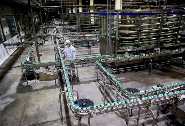 | A worker checking the milk processing chain of Vinamilk's plant in Bình Dương Province. The dairy producer's shares jumped on Tuesday, leading the market's rise. — VNA/VNS Photo |