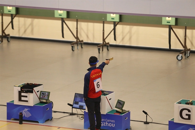 | Marksman Phạm Quang Huy seen in action at the Hangzhou 2023 Asian Games. Huy is among the Vietnamese athletes looking for Olympic places when they take part in the Asian Rifle/Pistol Championship in Indonesia. VNA/VNS Photo |