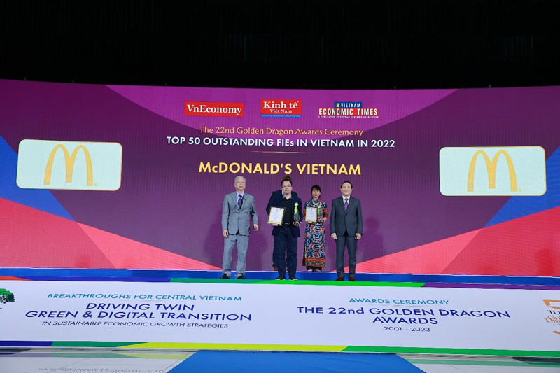McDonald's Vietnam is among the top 50 foreign-invested enterprises to be honored with the Golden Dragon Award in 2023. McDonald's Vietnam has won this award five times in a row by satisfying the "green and digital technology" transformation.