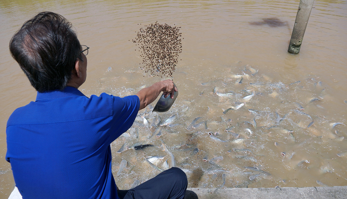 In the last two years, rain or shine, in the morning and afternoon, No, 70, from Thot Not district, Can Tho City carries a basin of food to the river wharf in front of his house. Inside the basin is feed for the catfish that he raises like pets.