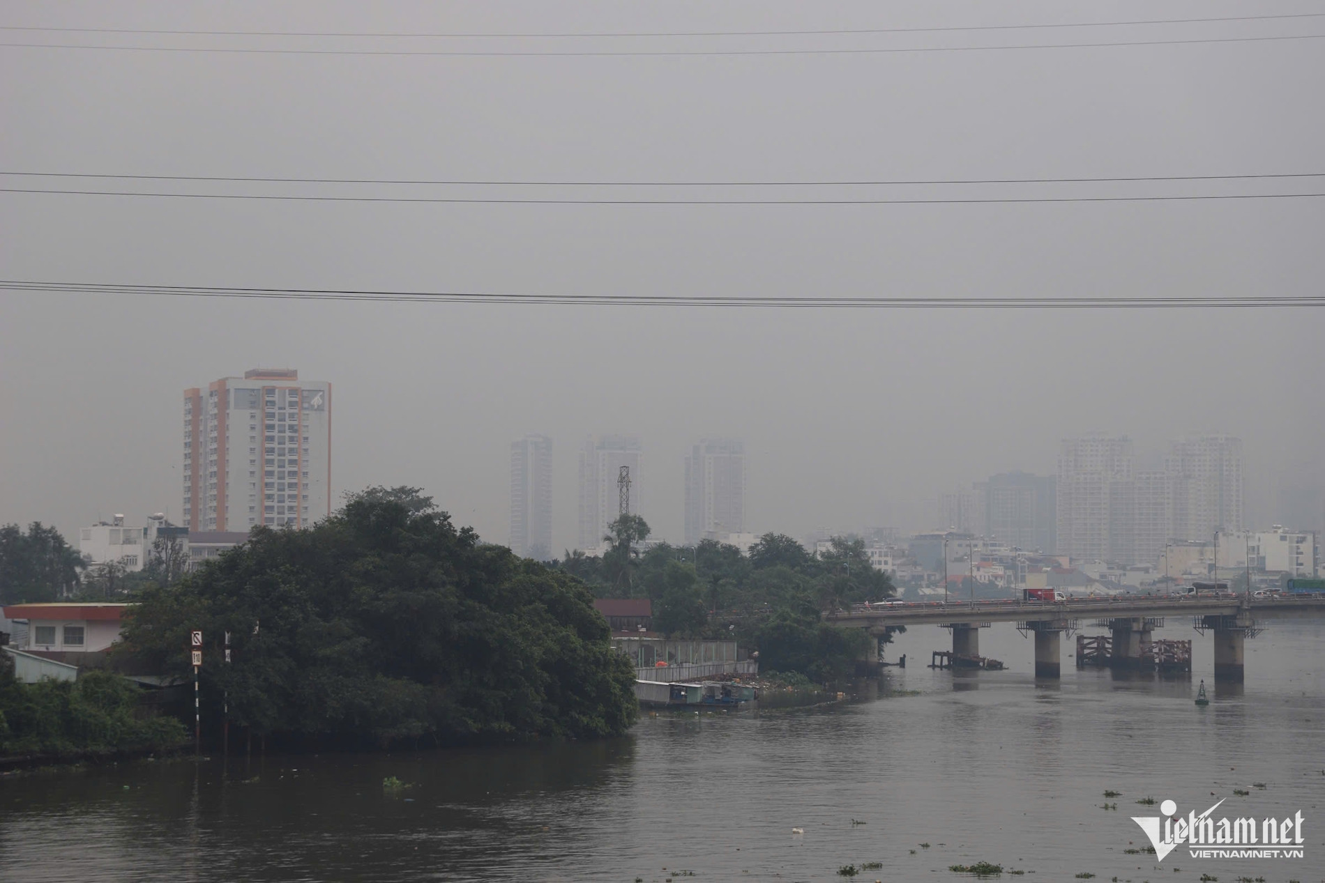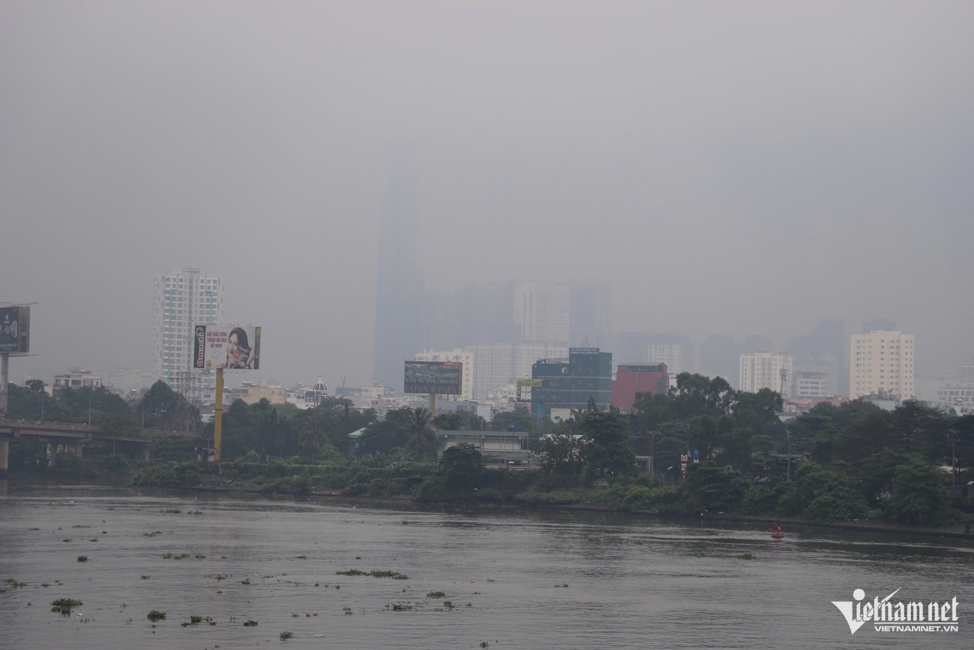 By 1 PM, dense fog continued to envelop the city, veiling landmarks like Landmark 81, Bitexco Tower, and riverside residential complexes along the Saigon River, such as those near the Thu Thiem Bridge connecting Binh Thanh District to Thu Duc City. Even from distances of less than 1 kilometer, the cityscape appeared hidden behind a milky white haze.