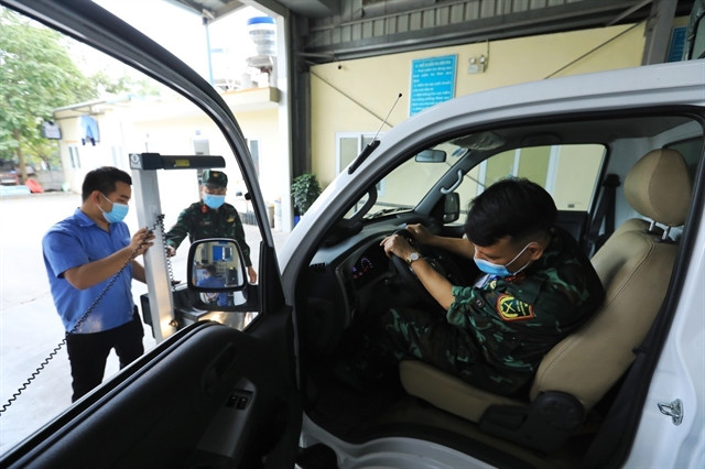 | Military officials inspect a truck at an automobile registration centre in Hà Nội's Long Biên District. — VNA/VNS Photo Tuấn Anh |