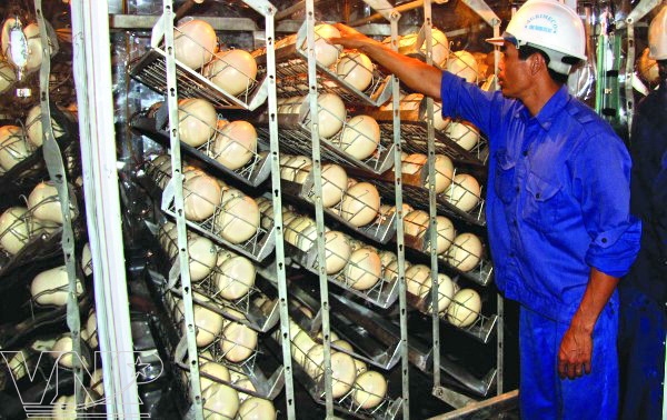 Ostrich eggs are also a favourite product because they are highly nutritious. The shells of the eggs are made into fine art items of high economic value. Now Binh Minh Company is the largest supplier of ostrich eggs and meat to Hai Phong and Hanoi, two large markets in the country. In the near future the company will expand its markets at home and abroad.