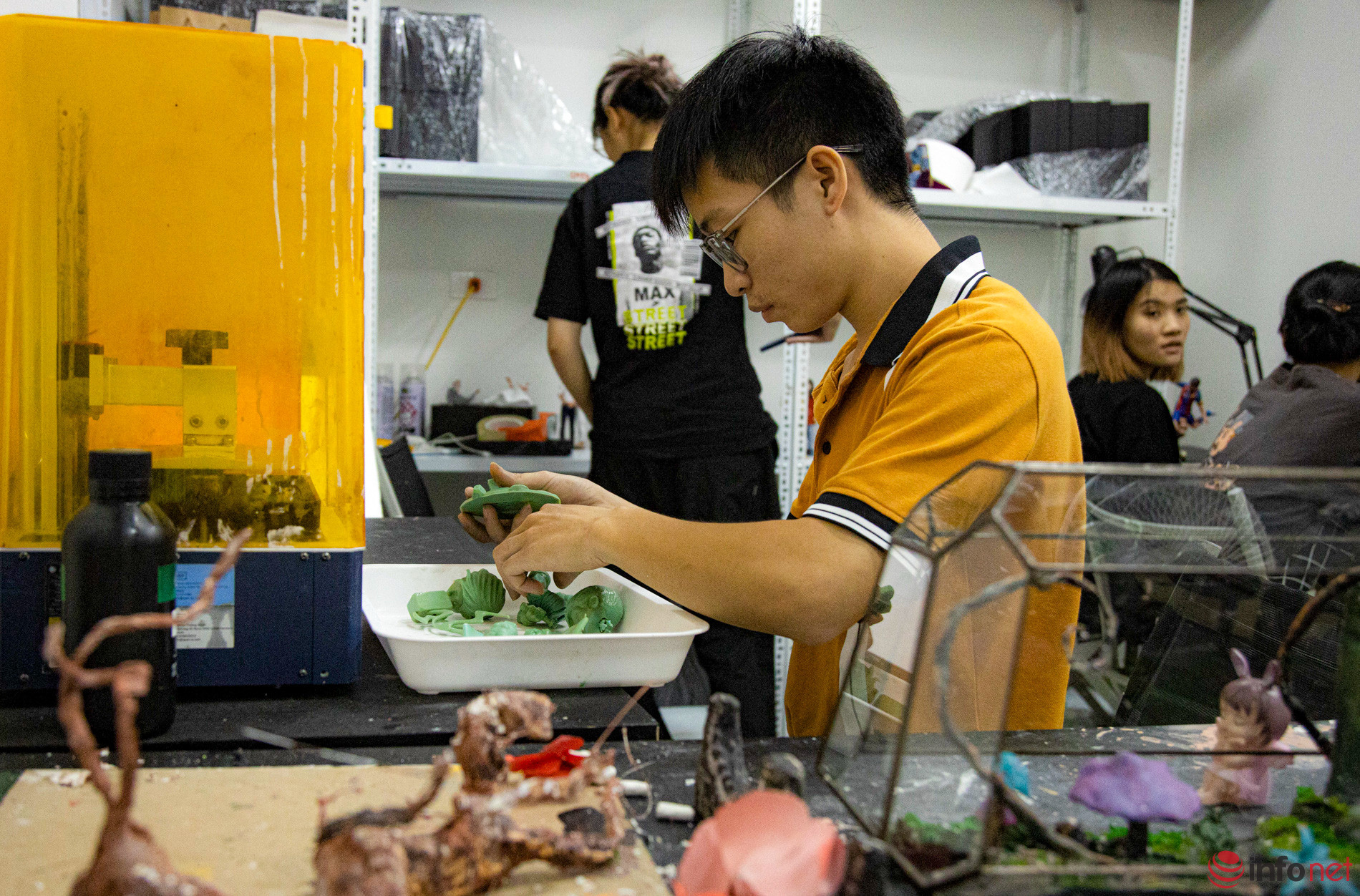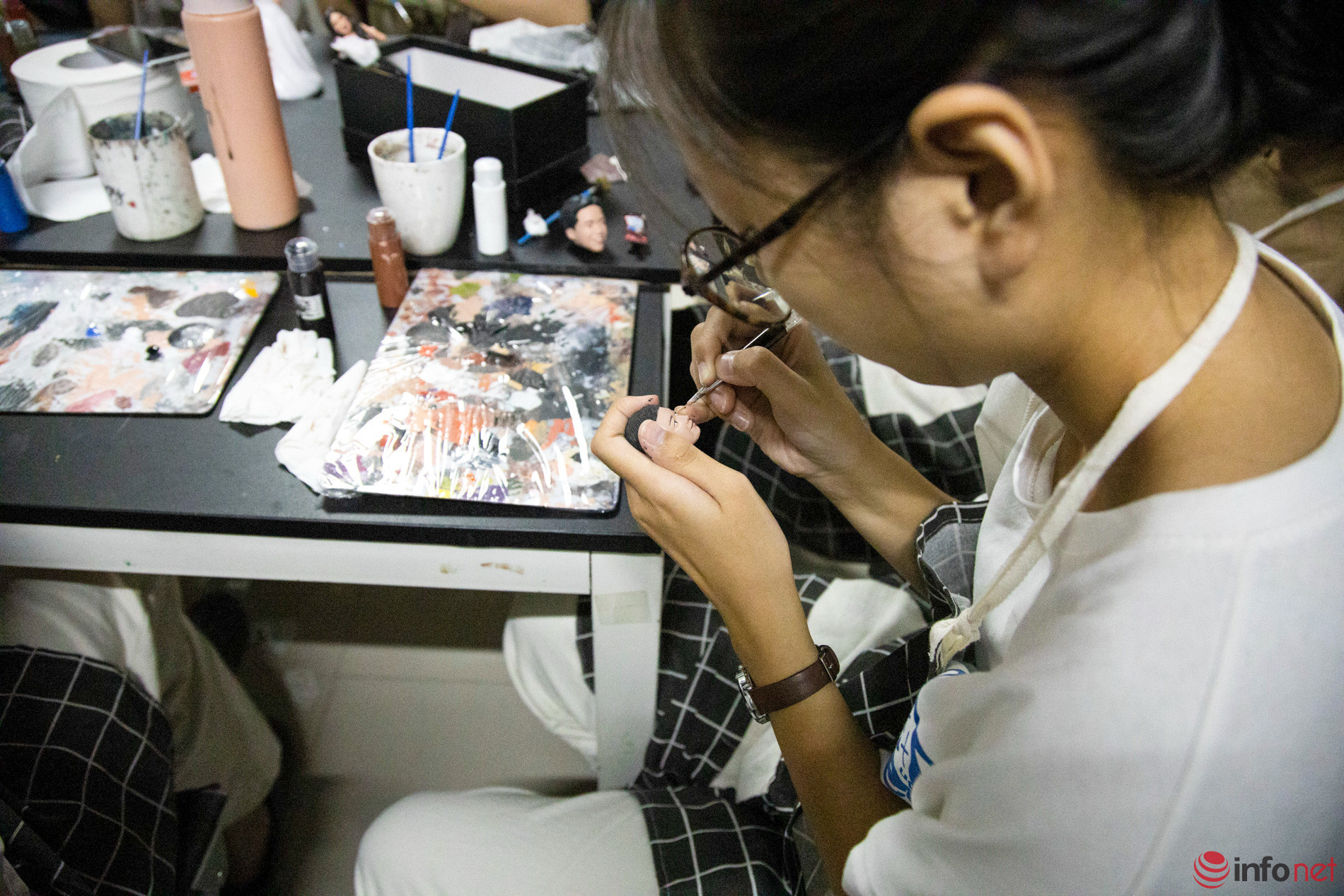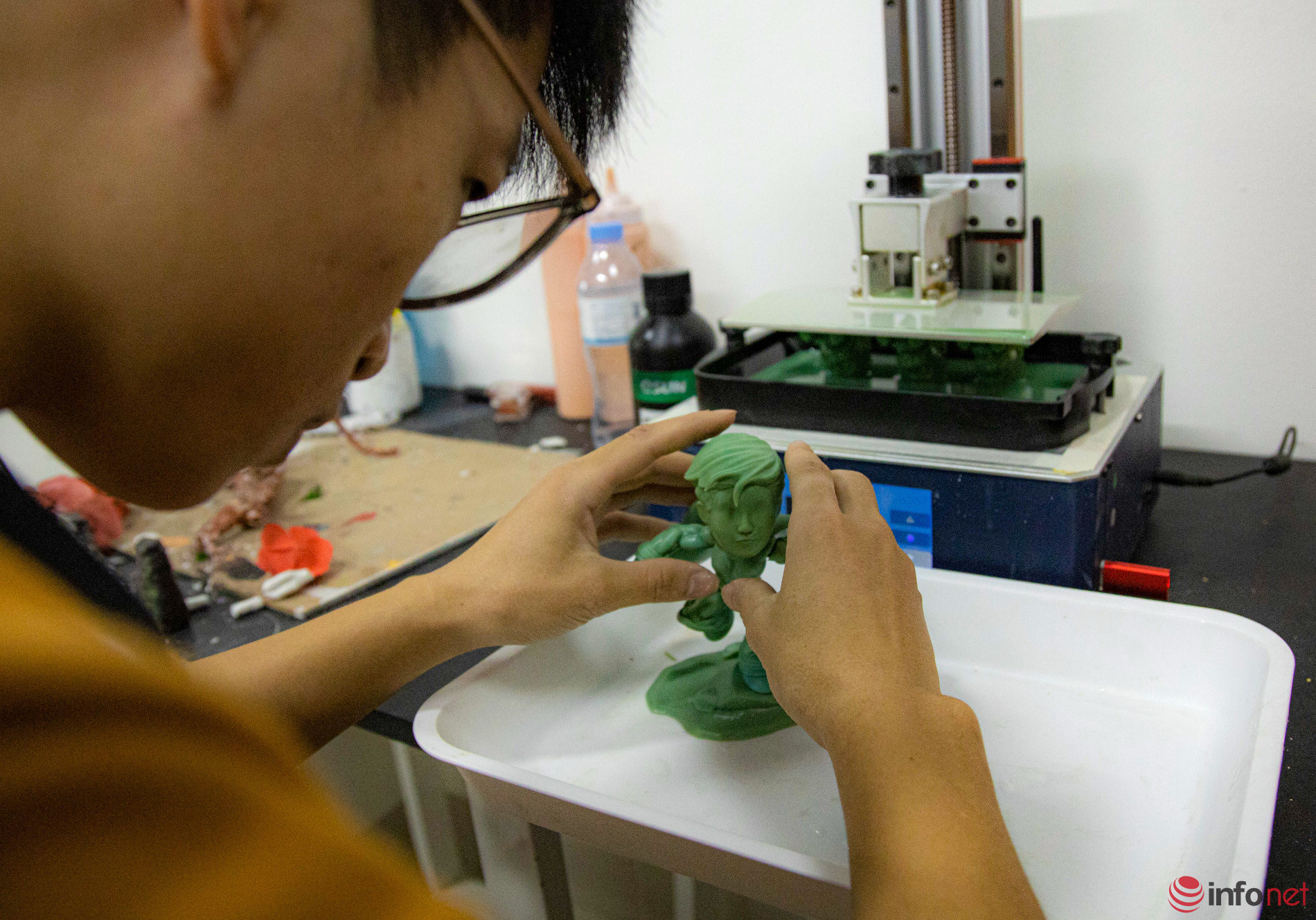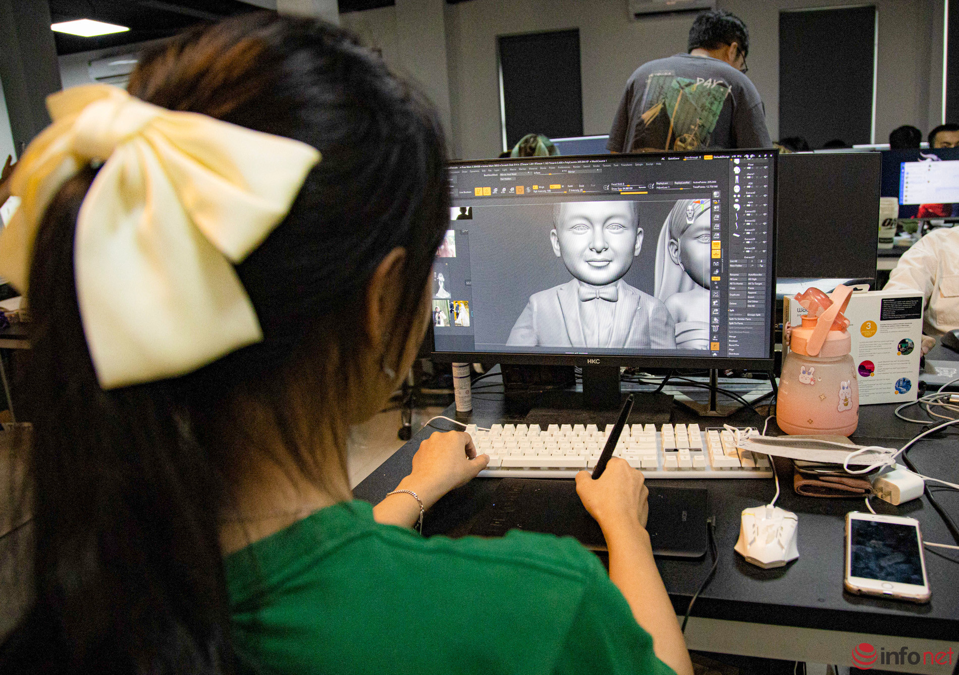 In Thanh Xuan District, Hanoi, the miniature human sculpture workshop of Nguyen Thi Thuy Dinh (born in 1998), also known as Aloha 3D, earns praise from those who love unique gifts…Miniature human sculptures, which resemble real people, are sold for one to five million VND as hot souvenirs.The atmosphere in the workplace is bustling, according to Ms. Dinh, as everyone is trying to complete products for October 20. Currently, Ms. Dinh’s workshop has more than 30 workers.According to Tuyet Lan (21 years old), a worker, the process of creating a sculpture is complicated. Each sculpture takes from 20 to 25 days to complete. If the customer requests higher quality, it will take much longer to finish.Although miniature sculptures are just around 18 cm in height, facial expressions are sculpted delicately. The material of the product is ABS plastic and Acrylic Vallejo paint. The statue is very hard, and can fall from 1-2 m without cracking. Durability and paint can last to 14 years if room storage conditions are good.Each mini statue is a one-of-a-kind product crafted according to the image sent by the customer. The more images, the more convenient the 3D rendering.Dai, who has been doing the job for more than a year, said: “Although the printer is automatic, it requires someone to sit and observe because there are many complicated details, and the machine will print errors. The operator must constantly be involved to fix it.”The stage that requires meticulousness and concentration is painting and drawing details for the statue. According to Tuyet Lan, the most difficult thing is to bring out the soul of the work. In addition to the detailed observation from the sample photos, the craftsman must keep calm, and delicately mix colors to make a harmonious face with eyes and eyebrows, and suitable charisma.Customers who place an order will be consulted for samples. The staff will make rough molds on the machine, edit details, and draw in colors. At each stage of mold making and color drawing, the staff sends it to customers to preview. Then the 3D images will be printed.After printing, statues are covered with a layer of background paint. Young artists said that many statues are repaired by artists here many times, which is normal because "the criterion has to be shown thoroughly, including charisma, the most unique feature of that person.”Nguyen Thi Thuy Dinh, founder of the 3D miniature human statue souvenir business model."The price of a product depends a lot on the design. The more detailed the statue, the more sophisticated it is, which means the processing time and the price is also higher," said Nguyen Thi Thuy Dinh.It is well-known that the miniature human statue is a popular gift in the US, Europe. Two years ago, after a trip abroad, Dinh embarked on researching the product in Vietnam with a more reasonable price. Customers in provinces and cities, sometimes even orders from abroad, placed orders after he brought miniature statues to the Vietnamese market.According to Dinh, the price of the statues is high due to the expensive imported materials and the processing which takes a long time. Sculpture needs meticulousness in each stage. Besides knowing how to shape, workers must be able to meet the requirements of each customer.