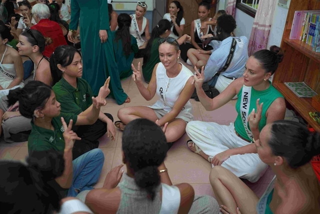 The pageant contestants also paid a visit to the Quảng Nam Education and Support Centre for Hearing-impaired Children founded by the non-governmental organisation Hearing & Beyond. There, they not only learned about the centre's activities, but were also taught sign language by hearing-impaired children.