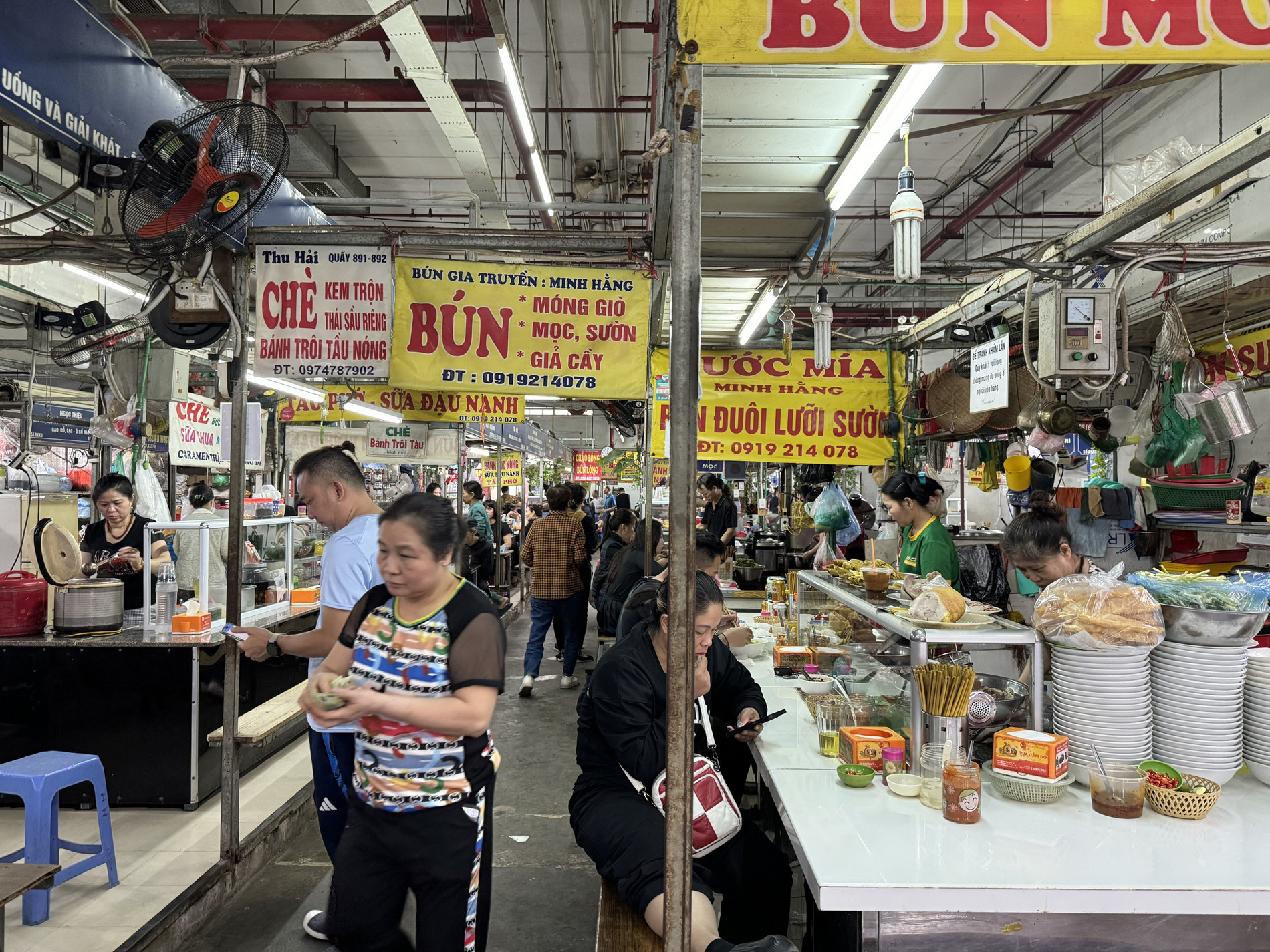 Like other traditional markets, Cho Mo offers a wide range of goods, from dried foods to clothing and fabrics, with dedicated sections for each category. However, it is the food court near the basement entrance that has become the main attraction, especially during lunchtime.